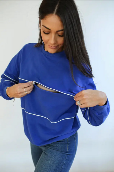 "This sweatshirt is dreamy. Made of wonderfully soft cotton french terry you will absolutely adore wearing this lightweight, relaxed breastfeeding sweatshirt.